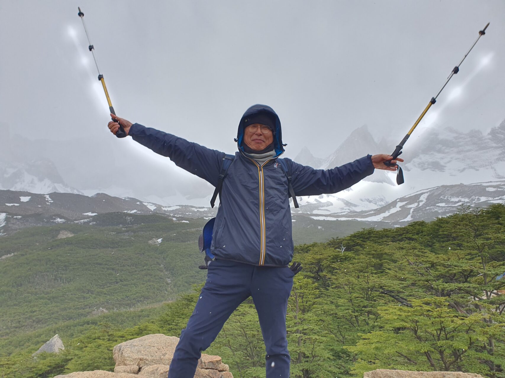 09:30, 날씨가 좋아 경치가 아름다워 지나가는 트레커를 붙잡아 서로 사진을 찍어줬다.